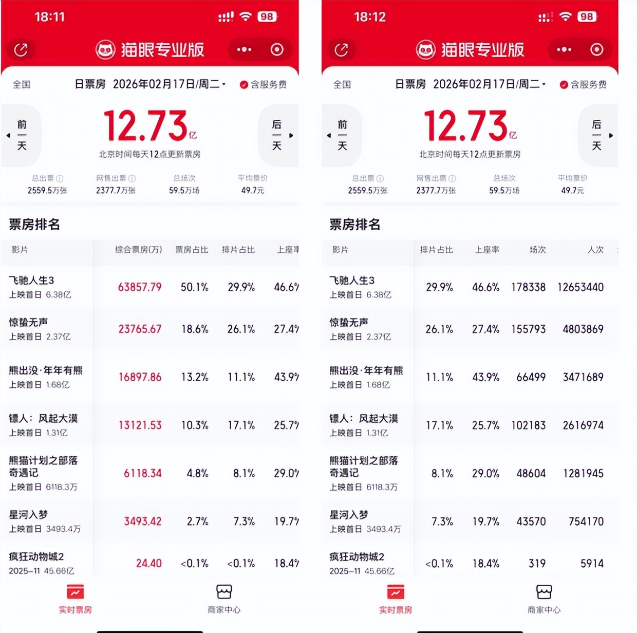 缺少现象级爆款电影,让2026年的春节档更像一场“效率更高的存量竞争”:头部稳、腰尾弱,票房集中度上升,大盘上限却被锁住。而不断走高的票价,则正在筛选掉“带着家人进影院”的那批人。