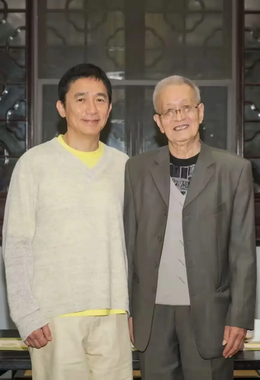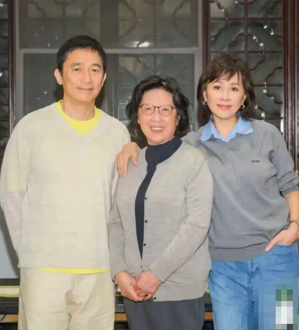 刘嘉玲的恩师,穿着比较素雅、头发都花白了。老师上了年纪、依然文质彬彬的,一看就是文化人。梁朝伟和刘嘉玲恩师合影,眉眼里都是温柔。